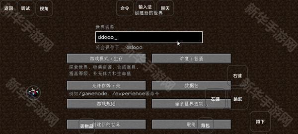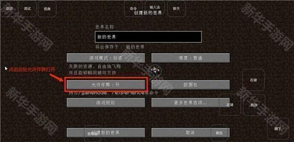 1、创建世界时要将允许作弊改为开,再点击创建世界;