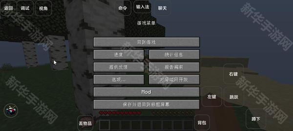 ②在游戏中选择左上角的“返回”→“对局域网开放”→“创建局域网世界”;
