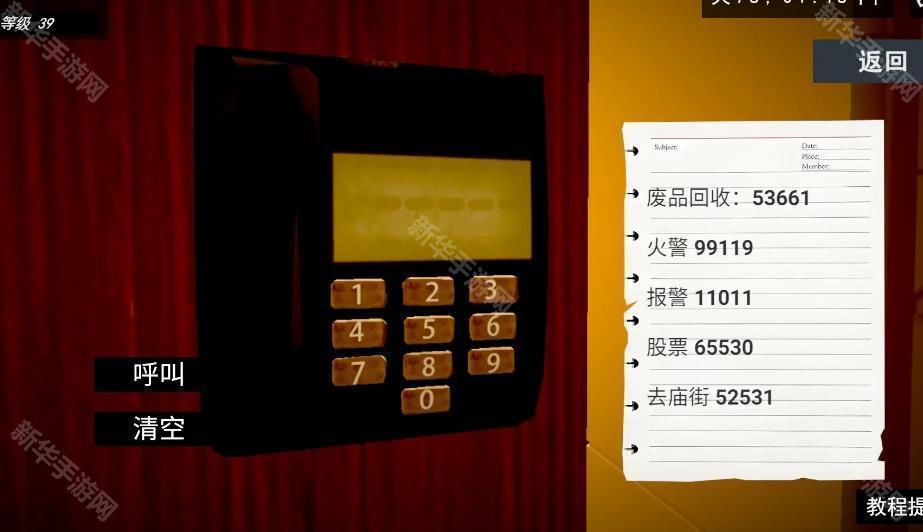 在我们的关东煮小铺的大门,也就是你的右手边有个小电话,点开之后,输入如图所示的回收废品的电话:53661,然后点左边的呼叫就行