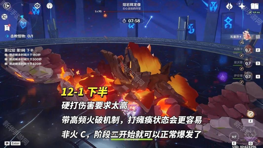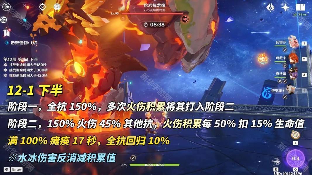【12-1下】460万血量的熔岩辉龙像,此BOSS建议走机制破除,共分2个阶段: