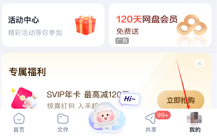 1、打开百度网盘APP,进入主界面后,点击右下方【我的】头像图标