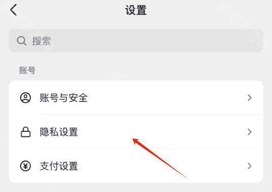 3、进入设置页面后,在账号设置里找到并点击进入【隐私设置】