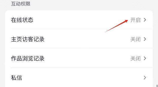 4、在隐私设置的页面,下拉找到【互动权限】中的【在线状态】并点击