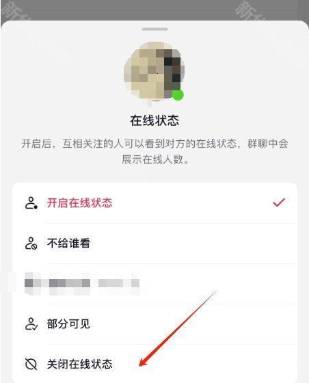 5、在下方弹出的【在线状态】的菜单选项里,点击【关闭在线状态】
