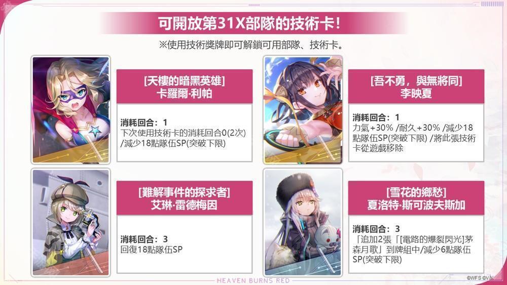 新追加 18 张第 31X 部队角色的技术卡。不只消耗回合,消耗部队 SP 发动强力效果的技术卡登场!