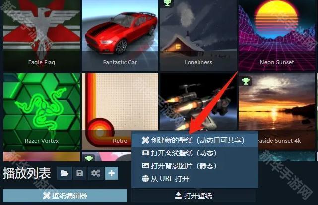 2、在下方弹出的菜单选项中,选择【创建新的壁纸】