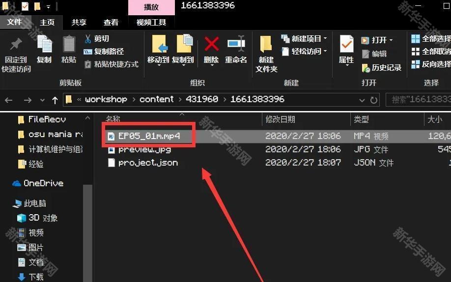 3、然后,系统就会自动弹出该视频壁纸所在的文件夹,我们也可以在文件夹中查看到视频壁纸的文件
