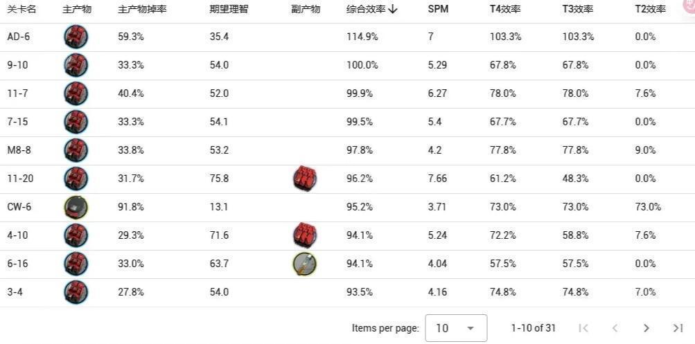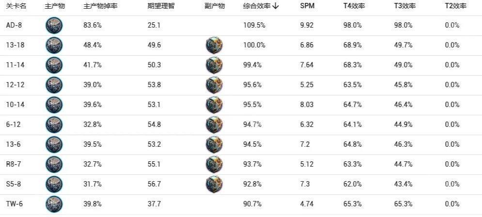 本关综合效率114.9% ,满练度需求10627个,下次已知UP是在明年的相见欢复刻,近期由于直系上位材料改量装置和双极纳米片的需求量减少,全新装置需求增量有所减缓,根据自己需求适当囤积。