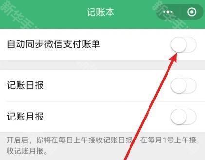 4、在记账本的【设置】页面中,点击开启【自动同步微信支付账单】的按钮,微信支付账单将自动同步到微信记账本