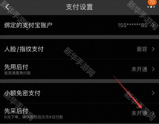 4、在【支付设置】的页面中,选择开通【先采后付】的选项