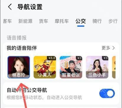 4、最后,在【导航设置】的页面,点击【语音播报】-【我的语音陪伴】,选择【林志玲】,即可恢复默认语音