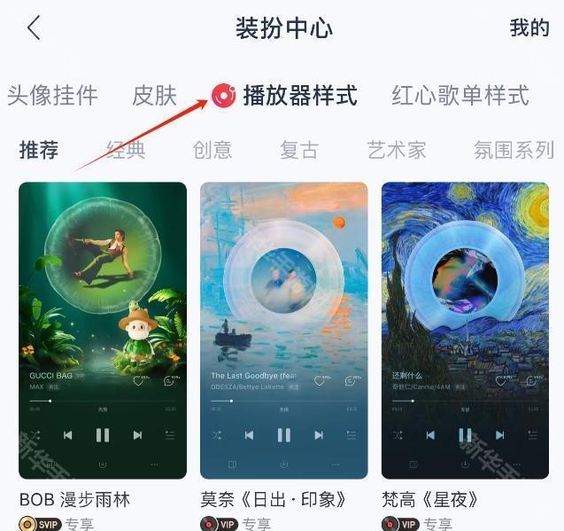3、进入【装扮中心】的页面后,点击上方的【播放器样式】选项