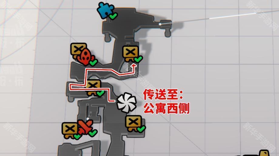 1、打开地图,前往【轻松公寓】的传送点,并来到【公寓西侧】