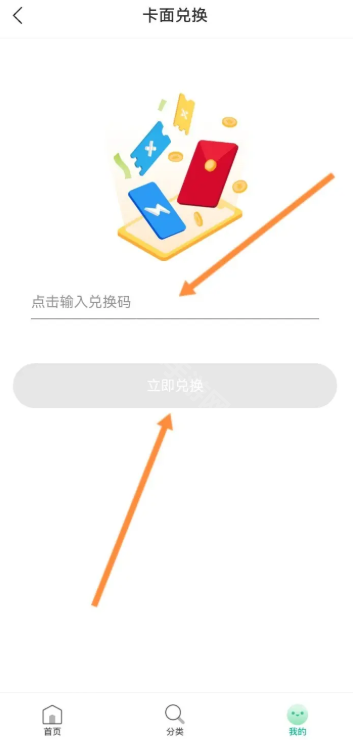 答:我的-我的卡面-卡面兑换-输入卡面兑换码-立即兑换