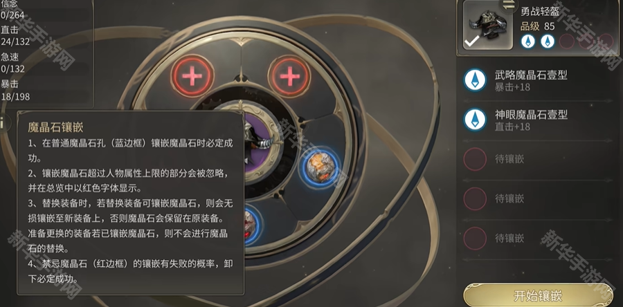 2、而且在手游中魔晶石的属性上限和装备是无关的,只要不超过左上角的总属性即可