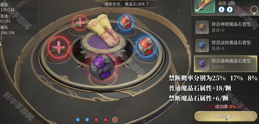 3、在手游中魔晶石系统变成了长线养成模式,禁断需要消耗的石头数量是少于端游的,并且禁断在手游中相当于是额外的属性提升