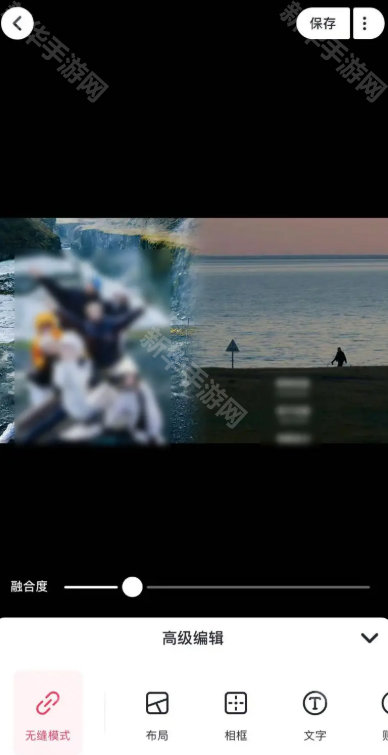 答:拼图-选择要拼起来的照片-高级编辑-无缝模式-调整融合度