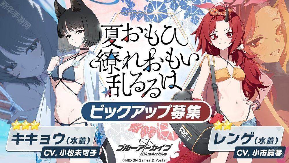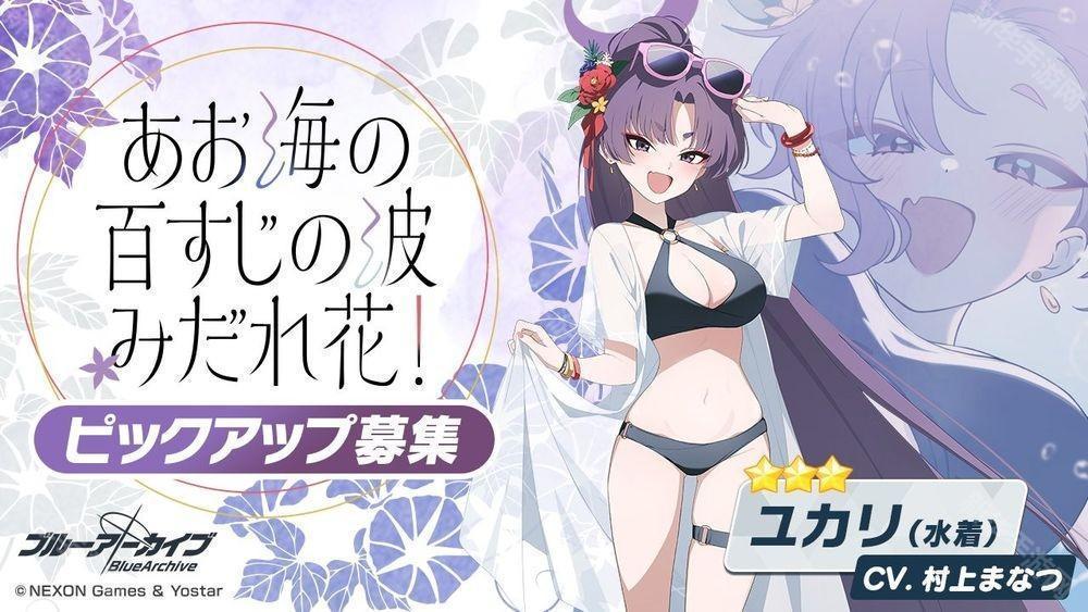 Yostar 宣布,手游《蔚蓝档案》日服将于 6 月 25 日(三)维护后举办全新活动剧情「百里出一花一朵~水上对决,一决胜负~(暂译,百ヨリ出ズル一轮ノ~いざ寻常に、水上胜负~)」,★3「紫(泳装)」、★3「桔梗(泳装)」、★2「莲华(泳装)」的特选招募也将同时登场。
