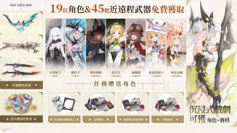 19 位可操作角色,45 款高品质武器待领取