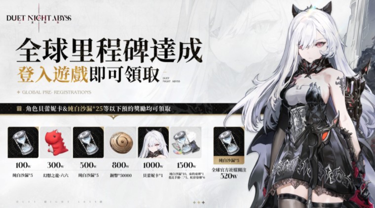 官方表示,截至上线前《二重螺旋》全球预约人数已突破 1,500 万。爲感谢玩家支持,所有玩家可透过游戏内邮件领取限定角色「贝蕾妮卡」、25 个纯白沙漏与其他养成素材及外观道具。此外,完成游戏任务还可免费解锁 7 位高品质角色。