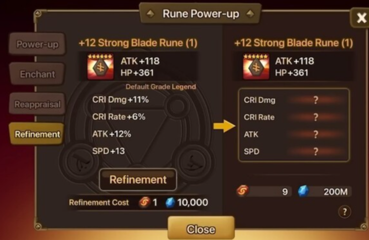 製炼石:在不变更符文副属性种类的前提下,重新调整副属性数值与强化分配。