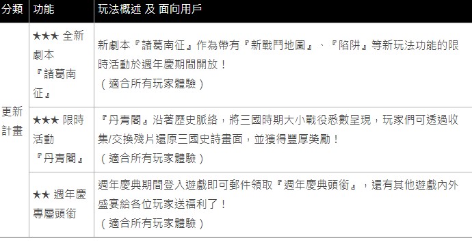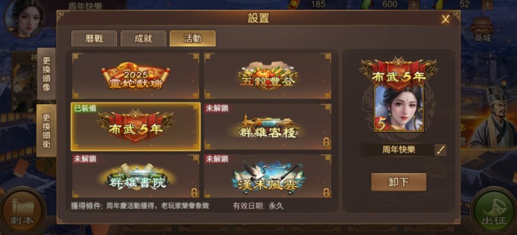 周年庆典期间登入游戏即可邮件领取『周年庆典头衔』,会根据各位主公参与週年庆典次数而变化噢~ 游戏内还有签到福利大放异彩,限定头像、宝物统统送给大家!