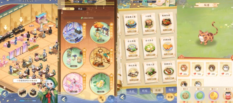 玩家会经营茶馆,可以自行佈置茶馆内部,游戏也提供各种主题风格的装饰品,不管是简单使用套装,或是喜欢混搭风格,都能依个人爱好进行佈置。游戏也加入了养成要素,玩家透过员工养成和指派,获取奖励与以提高服务速度,可以更进一步提升茶馆经营能力,随著茶馆不断的扩增,最终形成更庞大的酒楼事业。光是经营并不足够,玩家也可以在游戏研发各种美食和打造梦幻的喵乐园,不只能与可爱的猫咪互动,还能把它们安置在酒馆内,实现古代版的猫咪茶馆。