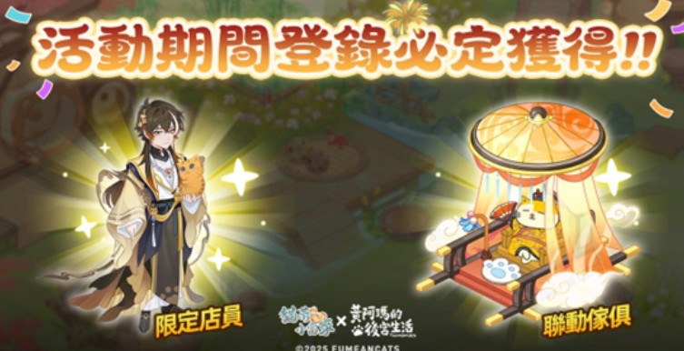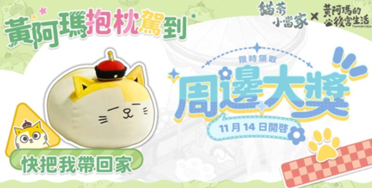 游戏与「黄阿玛的后宫生活」的限时合作提供了联动的傢俱装饰和限定店员,而且也有网红猫咪黄阿玛、三脚等大家熟悉的猫咪都会化身游戏中的虚拟小猫,不只能与他们互动,让它们入驻小店,打造专属的「黄阿玛的后宫生活」主题馆。