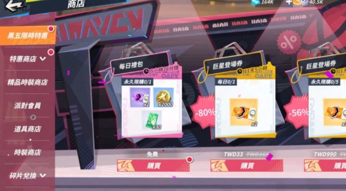 一年一度的黑色星期五强势降临,《全明星街球派对》同步推出「黑五限时特惠」,从每日福利到限时折扣全面祭出,让街球手尽情补给、超值入手各式资源!活动期间,只要登入即可获得「黑五每日登入礼包」随机一份,包含群星云集券、潮人券、鑽石、中级天赋素材、巨星登场券等实用资源,天天都有惊喜补给,把黑五的超值气氛一路延续到底。