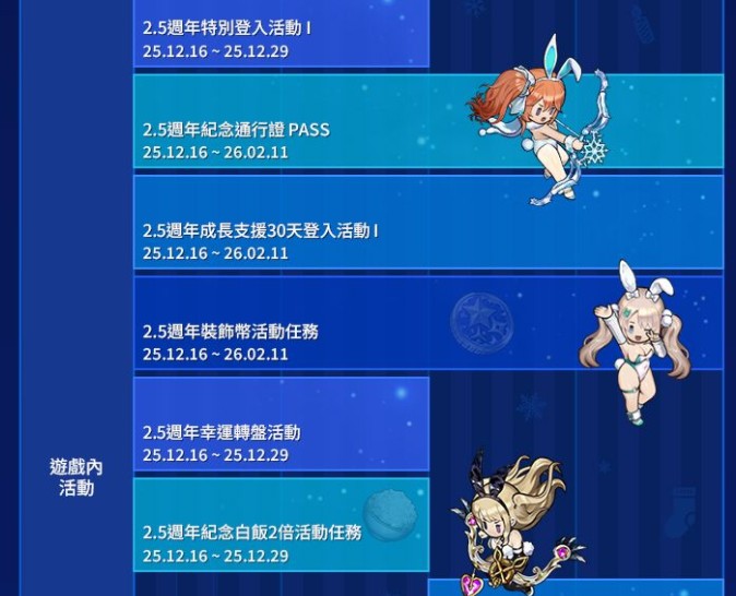 官方指出,迎接 2.5周年,50 天期间发放 500 次免费抽抽乐的机会,人气投票冠军威廉明娜的全新服装「冰雪女王」登场,现在就来获得全强化的服装吧。