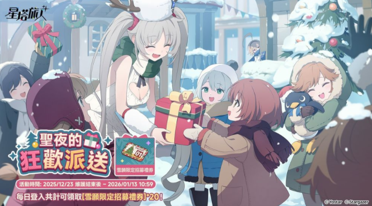 圣夜的狂欢派送即将开始。每日登入共计可领取 [雪愿限定招募礼券]*20。