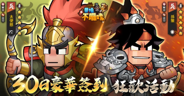 欢庆上市,官方同步推出「30 日豪华签到计画」。活动期间内每日登入即可领取元宝、稀有道具与养成资源,完成指定天数更可获得人气武将「太史慈」与「孙策」等实用角色,协助玩家快速建立核心阵容。此外,后续亦将陆续推出版本更新与期间限定活动,持续带来更多游戏内容与福利回馈。